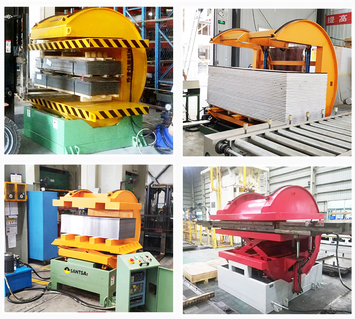It is used for the overturning of large sheet stacks or Plate material and is a necessary auxiliary equipment for the stamping automatic production line. It can not only reduce the scratches on the surface of the sheet, improve the product quality, but also reduce the labor intensity of the operator and improve the production efficiency.
