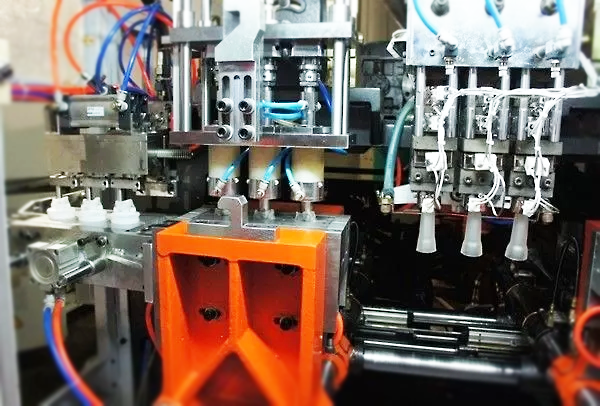 Plastic Blow Molding machine Reagent bottle with cavity 6 and automatic runner cutter