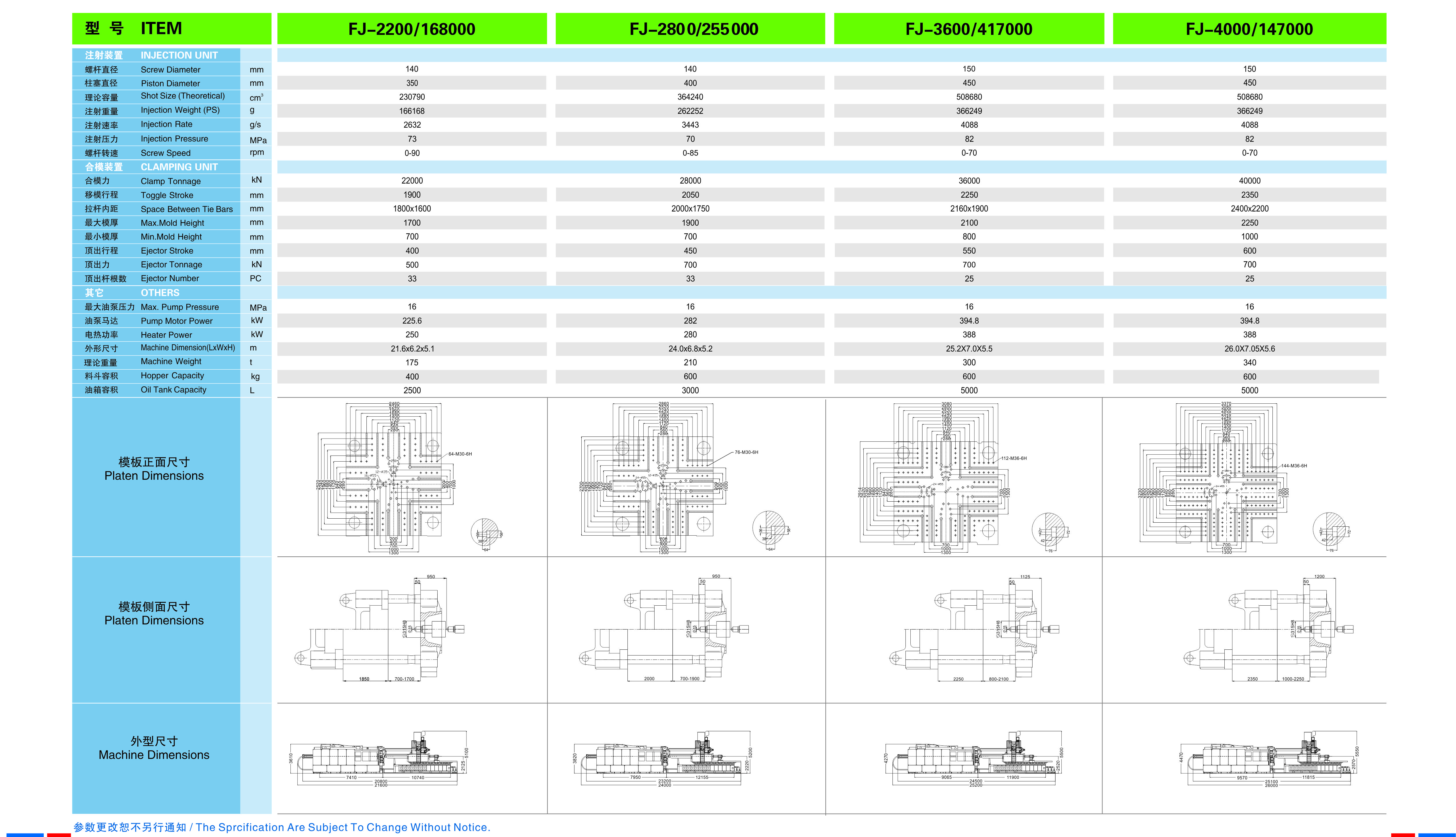 FJ/FJN 2200~4000 Ton Injection molding for PE Pipe Fittings