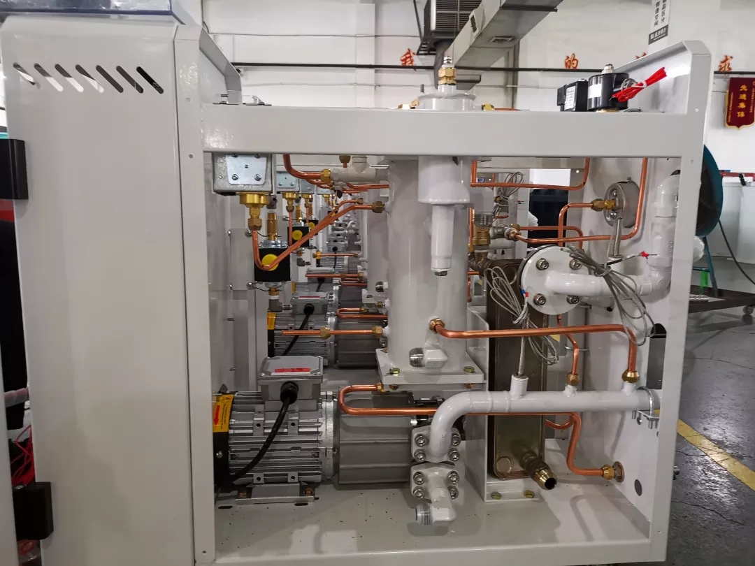 • Alarm device for low liquid level to guarantee system running safety. Switch of main power source conforms to CE safety standard.
