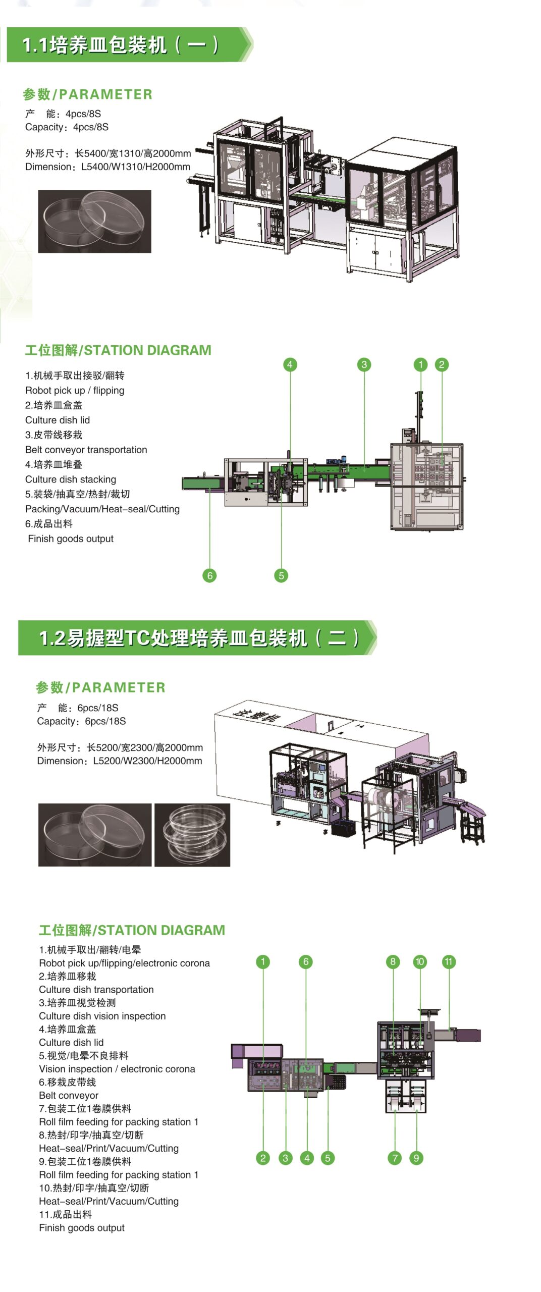 - Bagging Mechanism: Automates the packaging of Petri dishes, ensuring each bag contains 20 pieces.