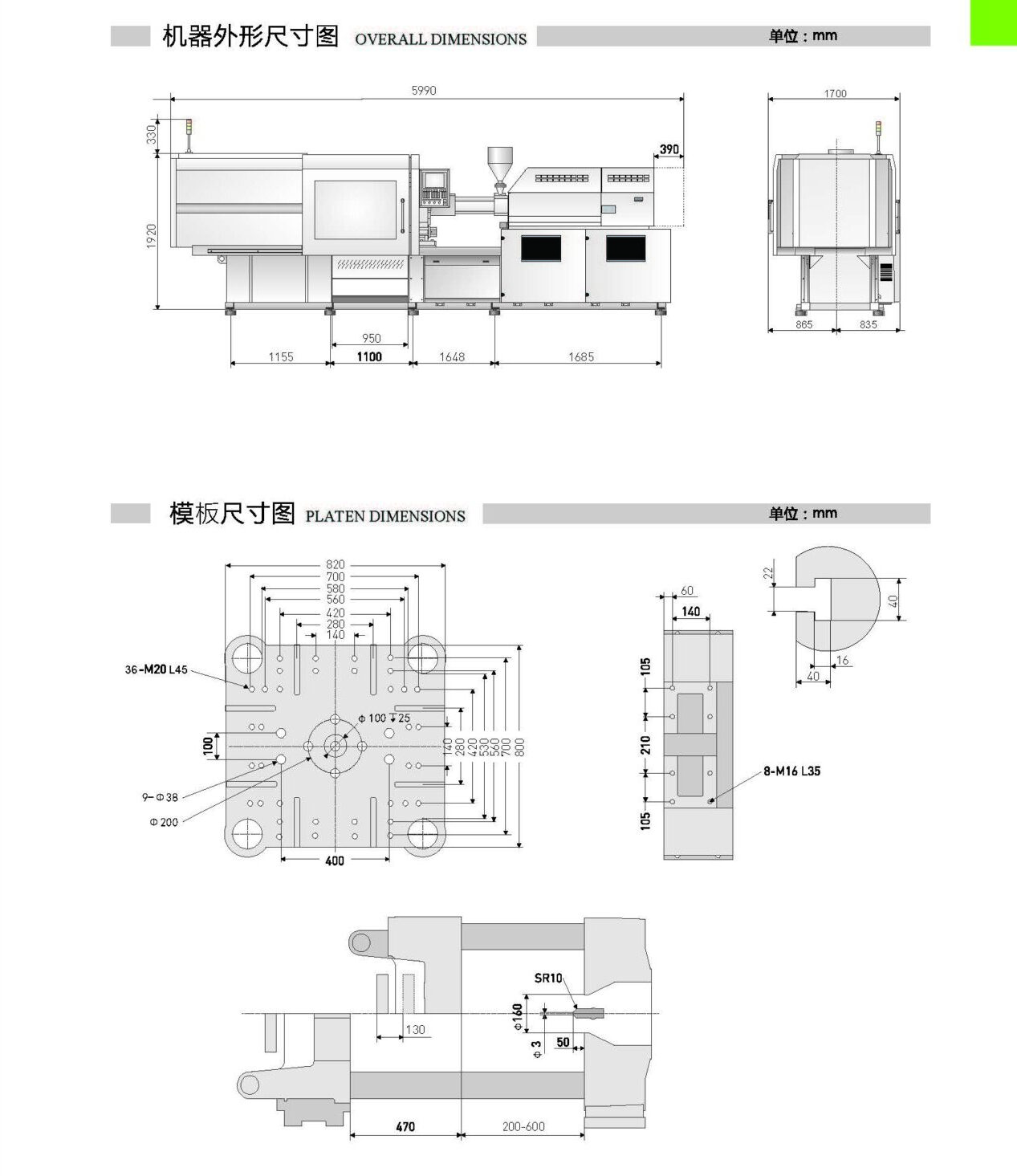 • High rigid toggle structure with 5 pins and self-lock, fast response speed, lead to smooth mold open/close, structure self-lock after high-pressure clamping, lengthen the service life of clamping ball screw and mold.