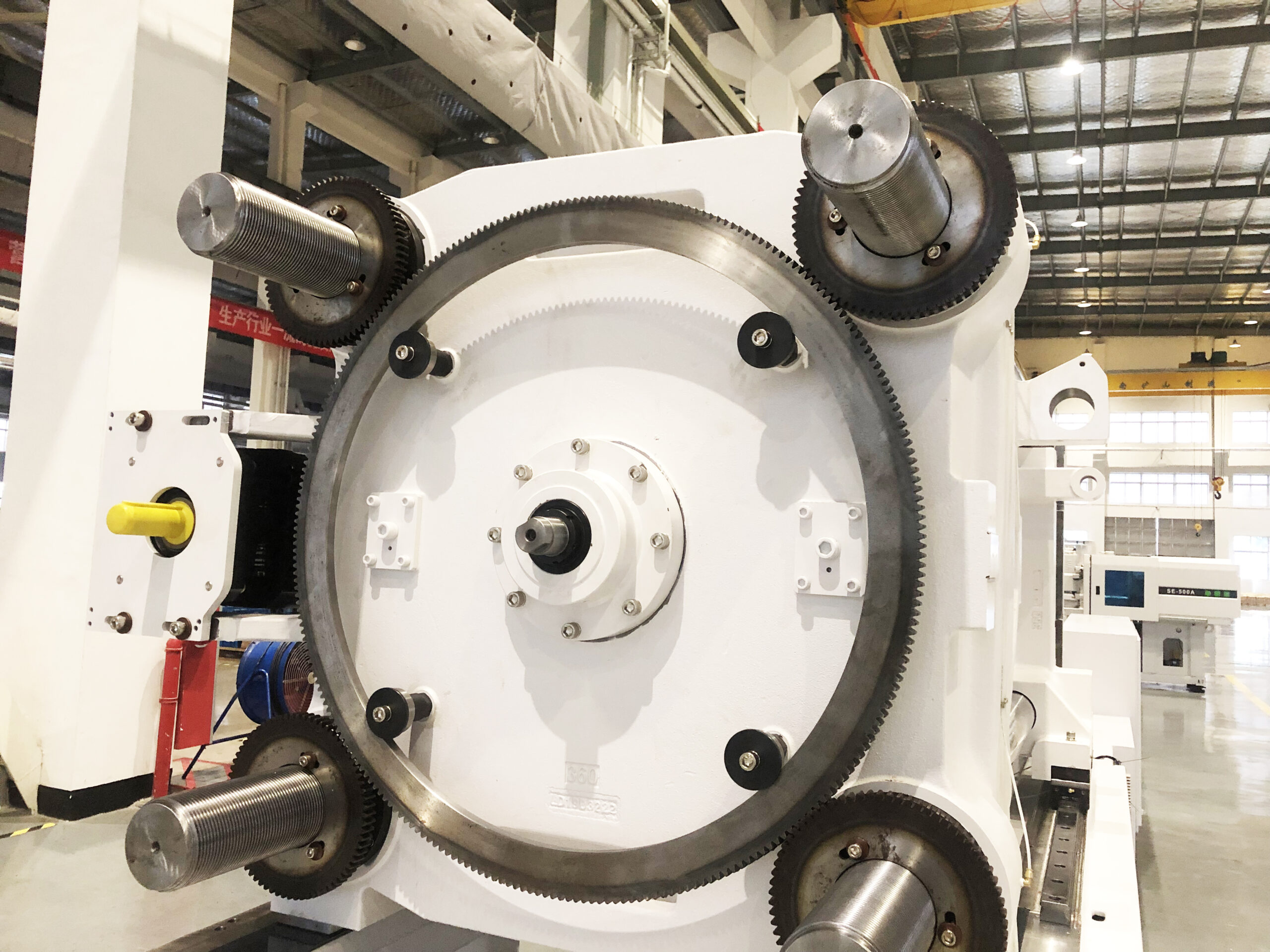• High rigid toggle structure with 5 pins and self-lock, fast response speed, lead to smooth mold open/close, structure self-lock after high-pressure clamping, lengthen the service life of clamping ball screw and mold.