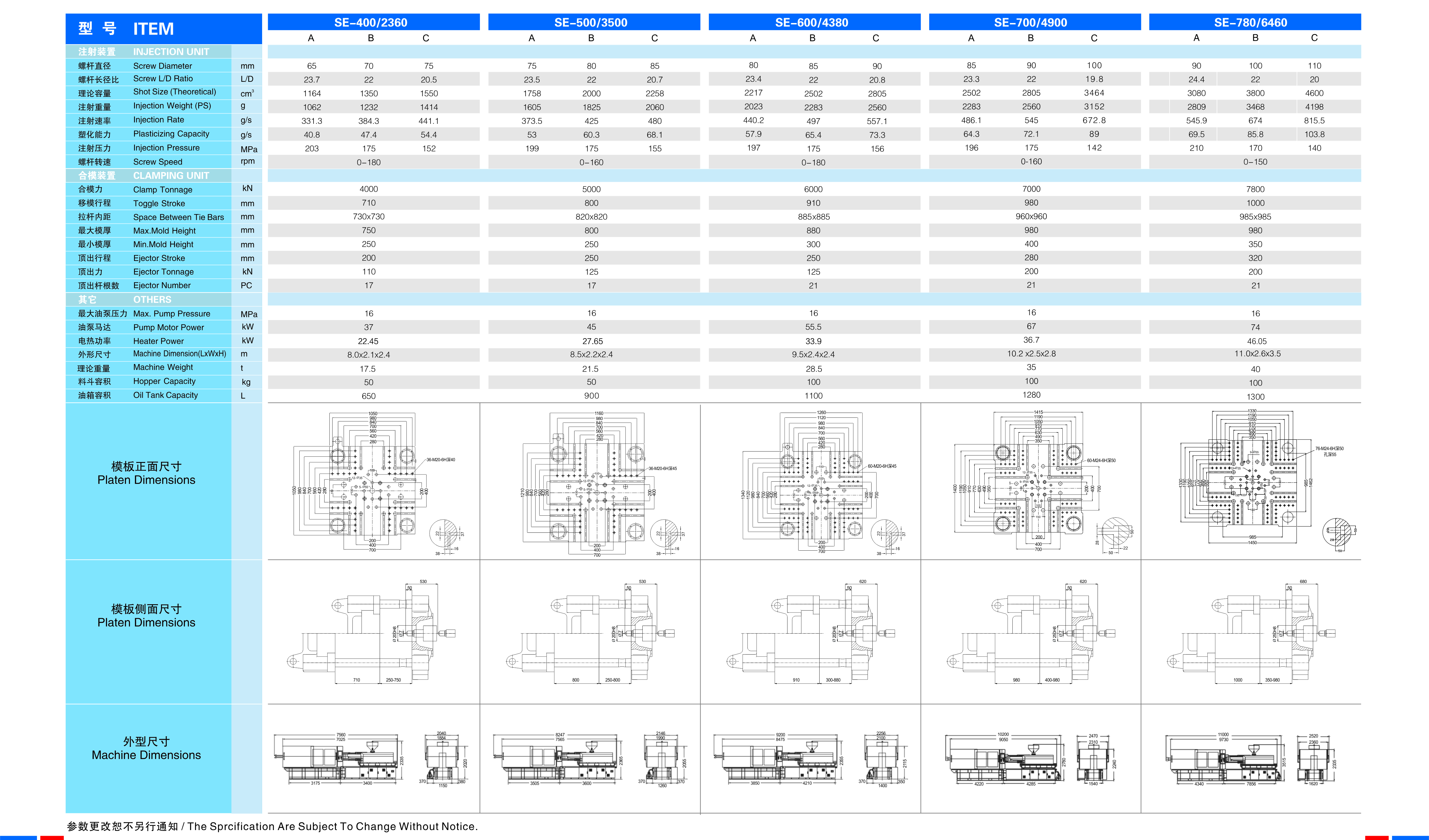 SE Series:400~780 Ton Hydraulic Injection molding