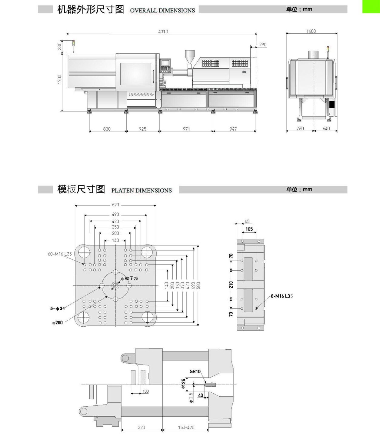 100 ton and 50 ton electric injection molding machine mobile parts
