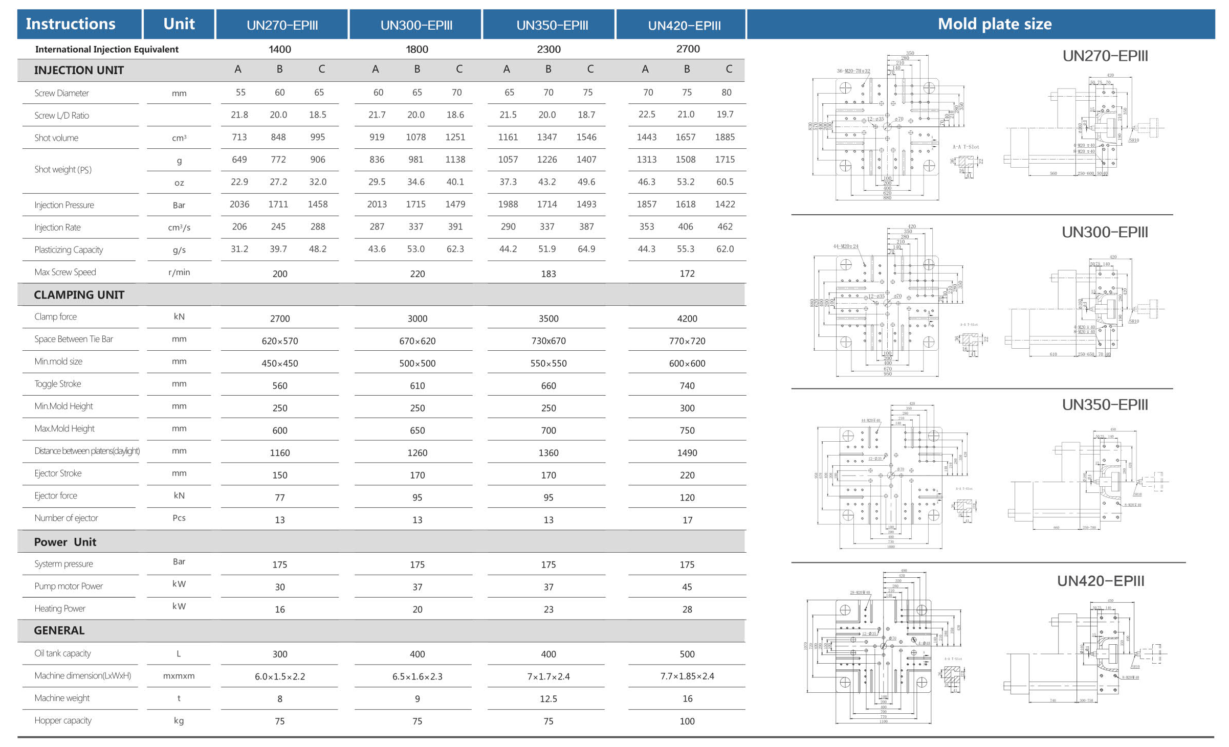 UN270~420 Ton Hydraulic Injection molding